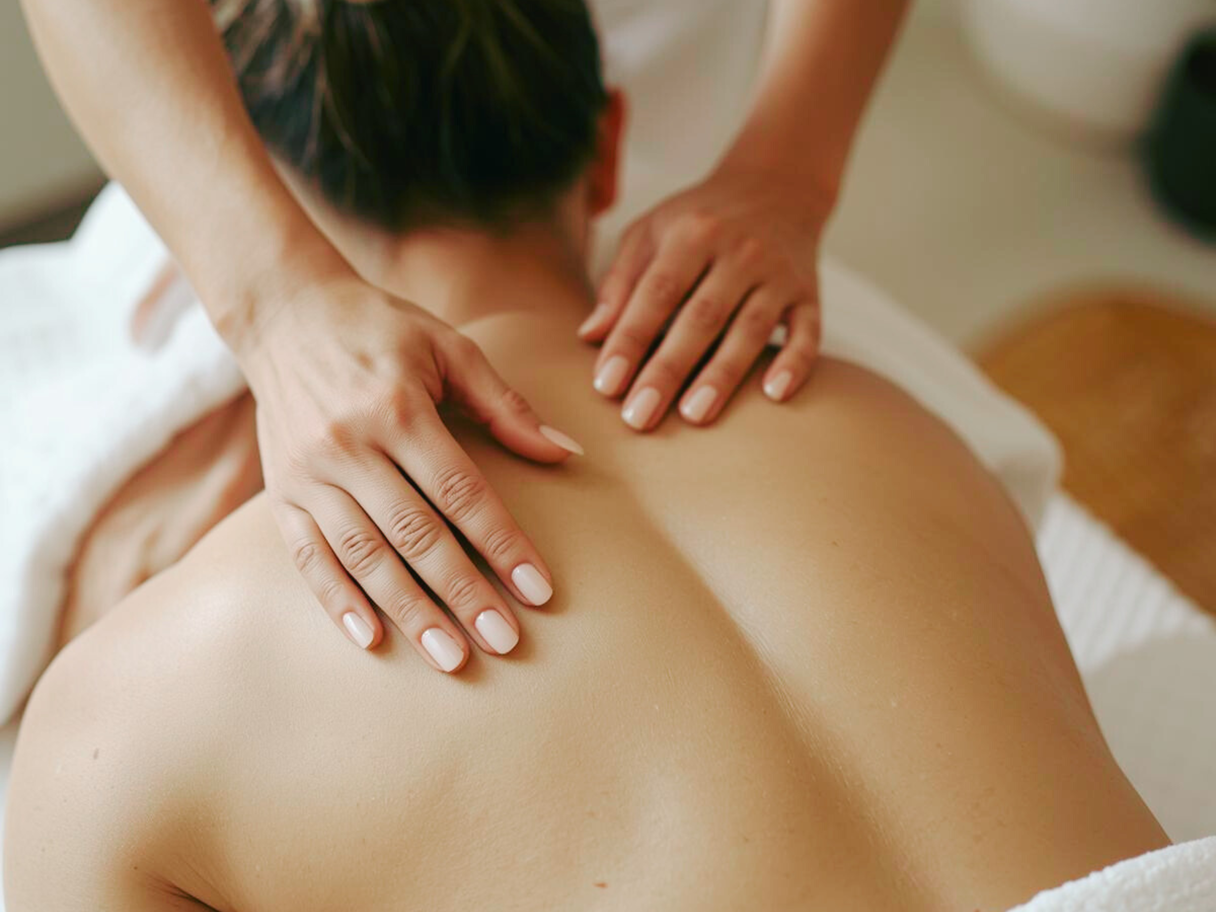 This is a slow, upper body relaxation treatment focused on the shoulders, upper back, neck, and scalp.